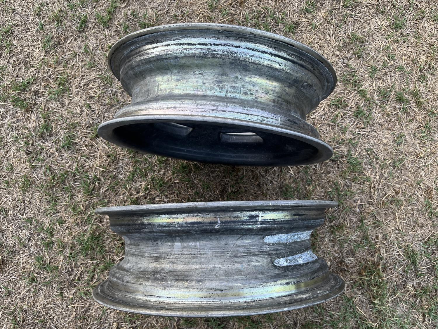 Magnesium Halibrands an ORIGINAL pair of Halibrand Dragster or Sprint Car front wheels Part No. 2005 15X4.5 see the catalog photos at the end for the specs, that also say they weigh 8 pounds each! They still had ancient radials mounted. I'd prefer local pick up, but I can pack them up. They are direct drilled for the GM / Chevy 5 on 4.75 bolt pattern. Nothing more to say about these - they are nice, no curb rash, not scratched, dinged or otherwise overtly blemished. They have a great patina, are smooth to the touch and could polish up well. I did the acid test and if you want the video of a drop of vinegar bubbling on them, PM me your cell number. These are genuine mag rims, from the early 1960s IMHO. several detailed photos below for a full picture. 3000.00 plus shipping. Cheers Friends, Anthony Last edited by AnthonyS; 07-14-2022 at 06:30 AM. |