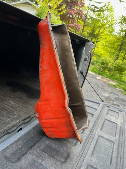 That's a 283 pan from a mid 60's B Body application. It was so identified by the seller when I bought the identical pan at a swap 10 years ago all because it had a valuable "A" embossed pan plug in it. I paid 20 dollars for both the plug and the pan at that time. I still have it. |