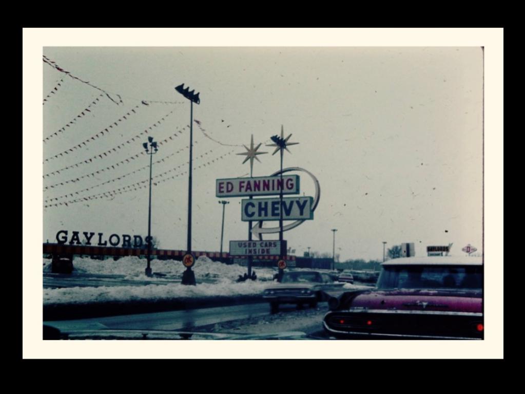 My wife stumbled upon this picture on FB today. Ed Fanning Chevy at 1252 N Lake St in Aurora IL. I believe I can see window stickers in the drivers side rear window of two 1964 full size Chevys, and given that there are no leaves on the trees in the picture, it must be from late 1963 or early 1964.