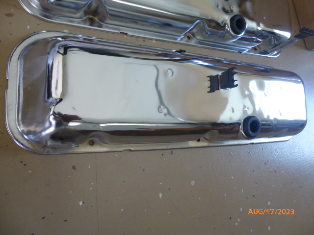 This is obviously a very early take off set of valve covers for a 68 or 69 Chevelle. The Corvette may have used the same covers but I am not sure. There are a couple of very light scratches but they are beautiful original covers. $500 plus shipping.