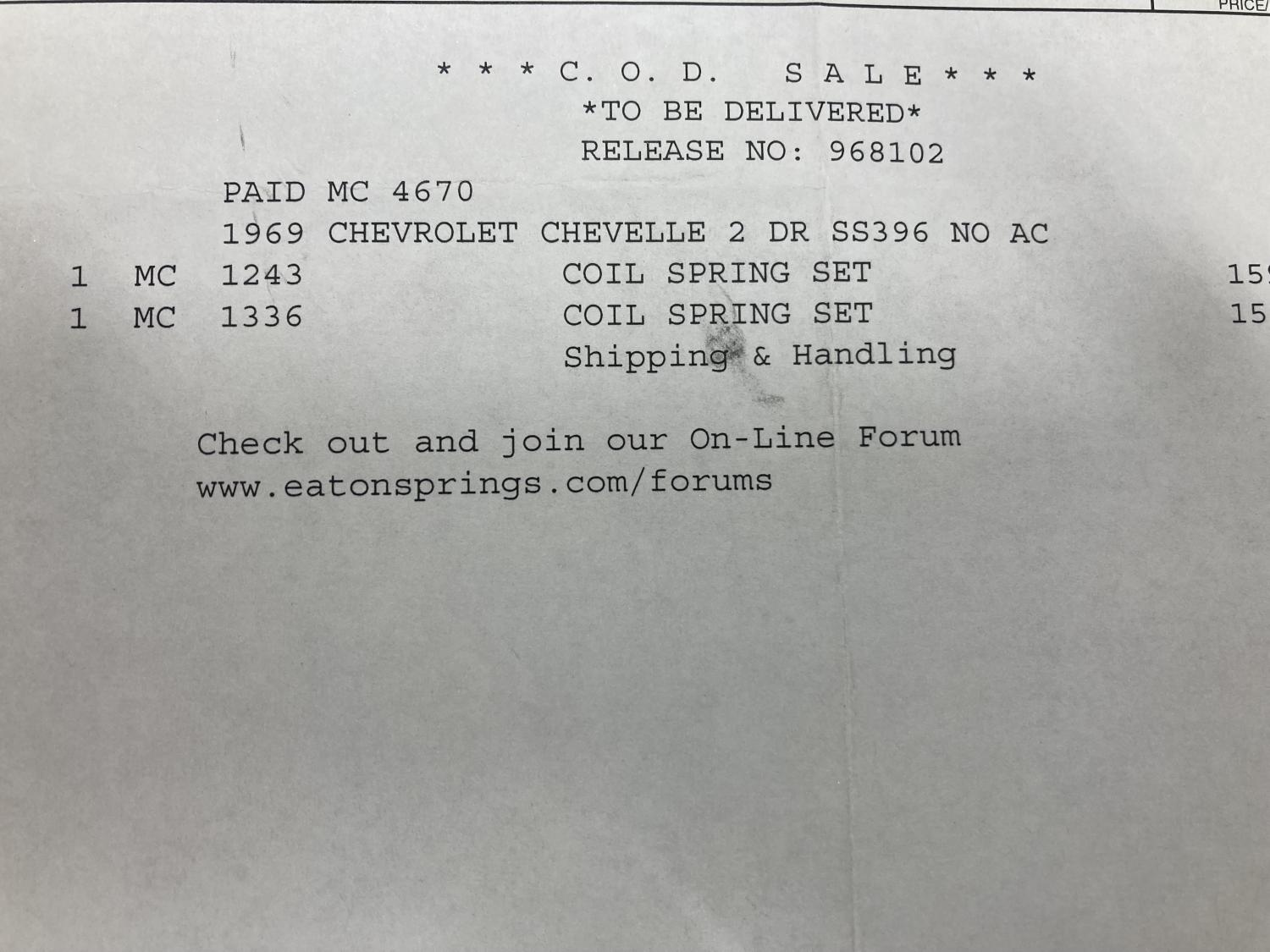 The springs I have installed in my 69 L78 Chevelle are awful. They are the 4 wheel drive package for Chevelles. I need to find a good source. I have searched ebay for used ones and what I have found are for small block cars. Not sure if there is a difference for the rear but I suppose are different for the front. Any ideas let me know. Thanks Lawrence