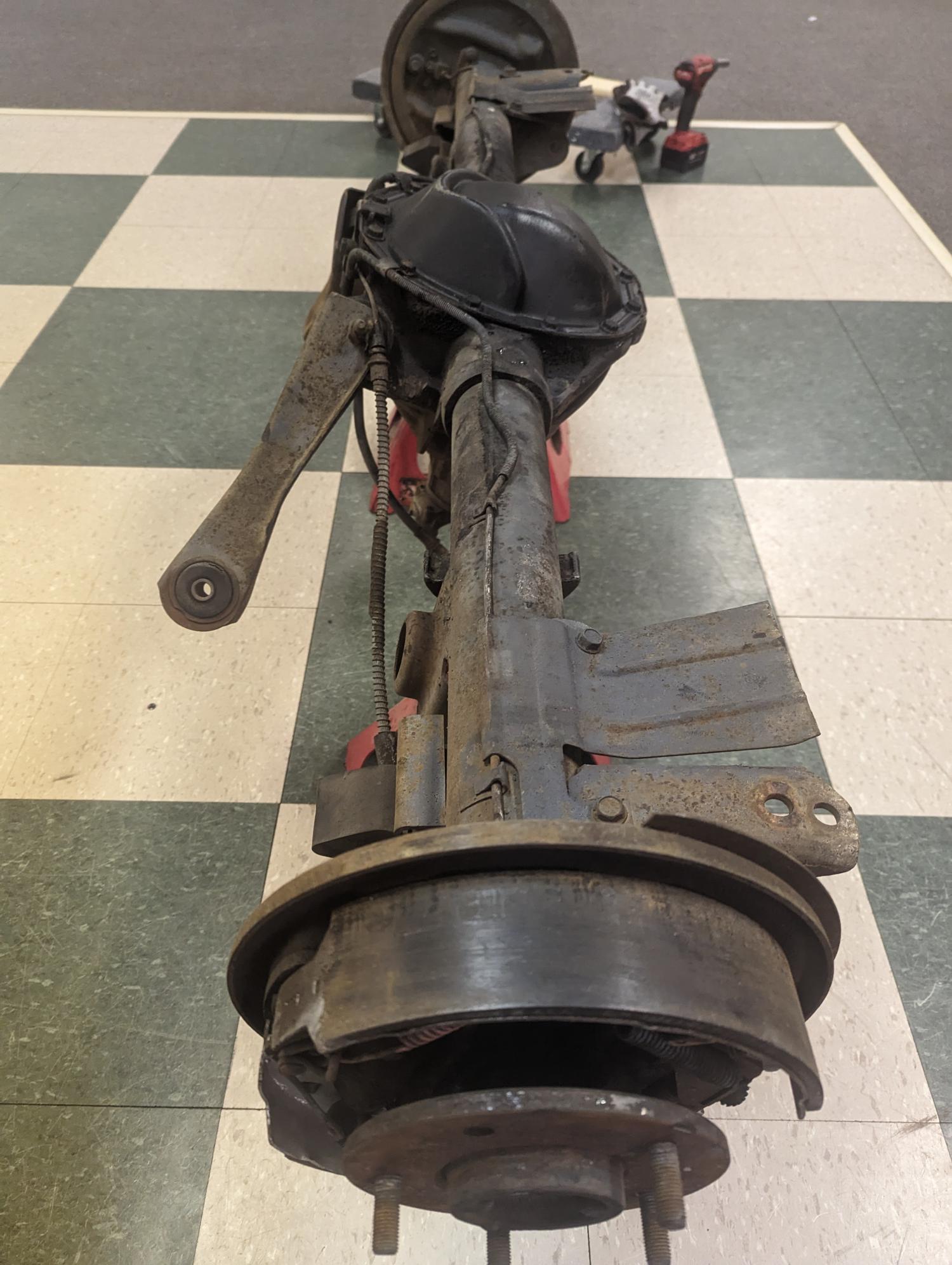 Original, unmolested CRV 12 bolt 3.31 posi. I just pulled this from an estate where it had sat on a rack for over 40 years. Guaranteed to not be a restamp. This particular one came from a 70 monte carlo SS with the LS5 engine. You may notice the plates that go on the back of the lower control arm brackets and the extensions for the rubber bumpers that are unique to air shock equipped cars and can be removed for non air shock cars.The Chevelle and Monte Carlo used the same coded axles and the CRV code is specific to 454 cars with 3.31 posi traction. The 454 cars had a larger pinion yoke than 396 cars. The only condition issues are that one of the shock mounts was cut when it was removed back in the day (a 15 minute fix for any competent welder/fabricator) and it is missing one brake drum. Still has it's original "9210" yoke, original gears, original posi, axles, backing plates, upper control arms, brake cables are in good shape. I'm located in Hays, KS and would consider shipping but I'm guessing it would cost $400-500 to go to one of the coasts.