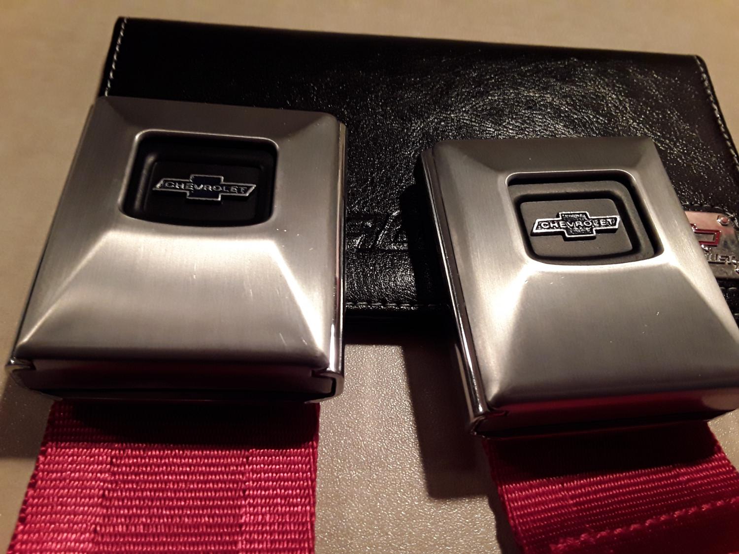 I have 2 late 1966,1967 restored original Corvette seat belt buckles.The push release mechanisms work perfect! I'm pretty sure they are not reproduced.Any idea what they are worth? The red belts are repops! Thanks,Bill.