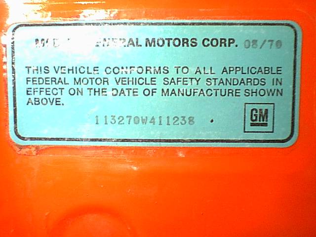 The Blue Horizontal GM Cerification Drivers Door Label became mandatory on ALL GM cars starting with the 1970 production year starting in August 1969.