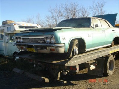 I know of a 66 caprice four door that hads a lot of options,327,4 speed,12 bolt,factory tach,Am tape multplex radio,vinly top,cloth interior and a trailer hitch.It would make a nice tow vehicle for a race car. How bad is your car rotted? If you have pictures you can email then to me and I'll post them for you. Ed