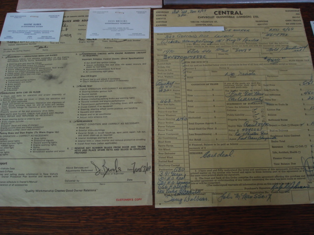 I own a 70 W-30 purchased new at Central Chev in London Ontario. I have major paperwork with the car, from cncelled cheque to key knock outs in an envelope, all order forms, window sticker, pre delivery, etc. I an looking for anything dealer related, ie license frames to use on car. any leads would be greatly appreciated. I only assume the dealership was heavy into performance in the day. Anyone owning a car sold there, I will send picures of their original paperwork forreference. Thanks. Gene