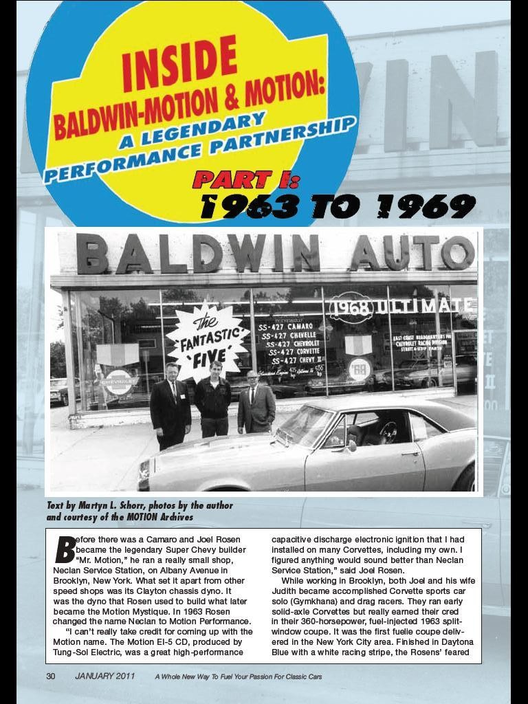 The January 2011 issue of Auto Trader's CORVETTE/CHEVY magazine will carry the first of a two-part History Of Baldwin-Motion & MOTION. The first part of BALDWIN-MOTION & MOTION: LEGENDARY PERFORMANCE PARTNERSHIP, will deal with 1963-1969. Part II will cover 1970-2010 and will be in the February 2011 issue.