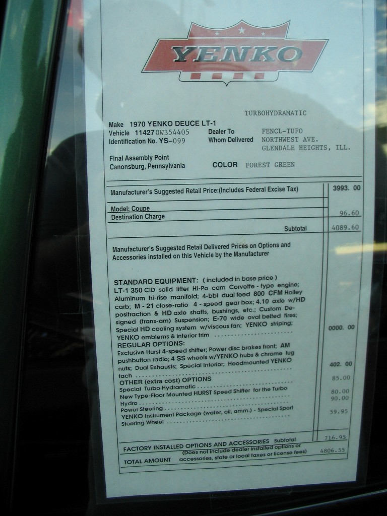 I was searching around and found this at about 1:05 there is a green Yenko Deuce.