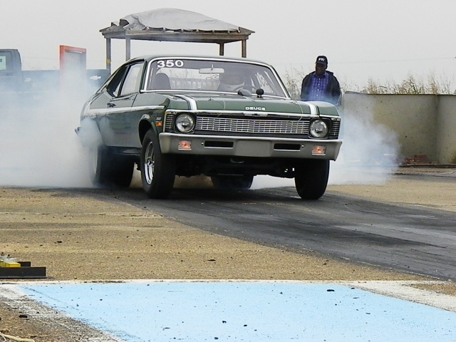 The Mopar is 440CI, 2 fours on a tunnel ram, auto with transbrake. This run was in the finals of Super-Pro, but since he is a good friend and we had agreed to split the $$ regardless of who won, just for kicks, I decided to leave at a higher RPM (5600 vs 4600) just to see what she would do. He dialed a 6.70, me a 6.64, but because of the best ever 60', I broke out with the 6.607.