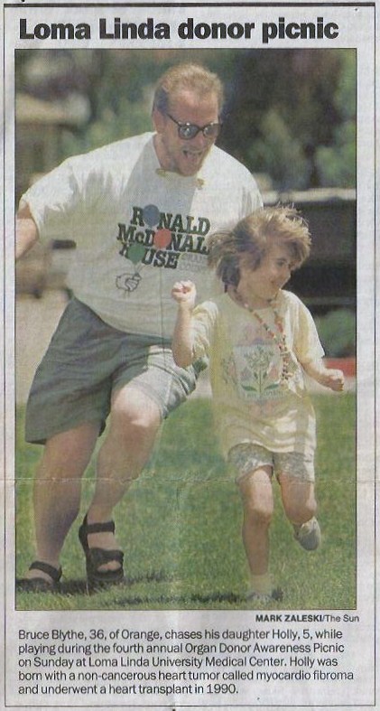 We knew that Holly Blythe's heart came from a 4 year old...and also knew that it came from the Pasadena area...so we put two and two together and took this article in to the surgeons who confirmed that this was the girl who donated...so that many (including Holly) could live. I cried as I re-read this....