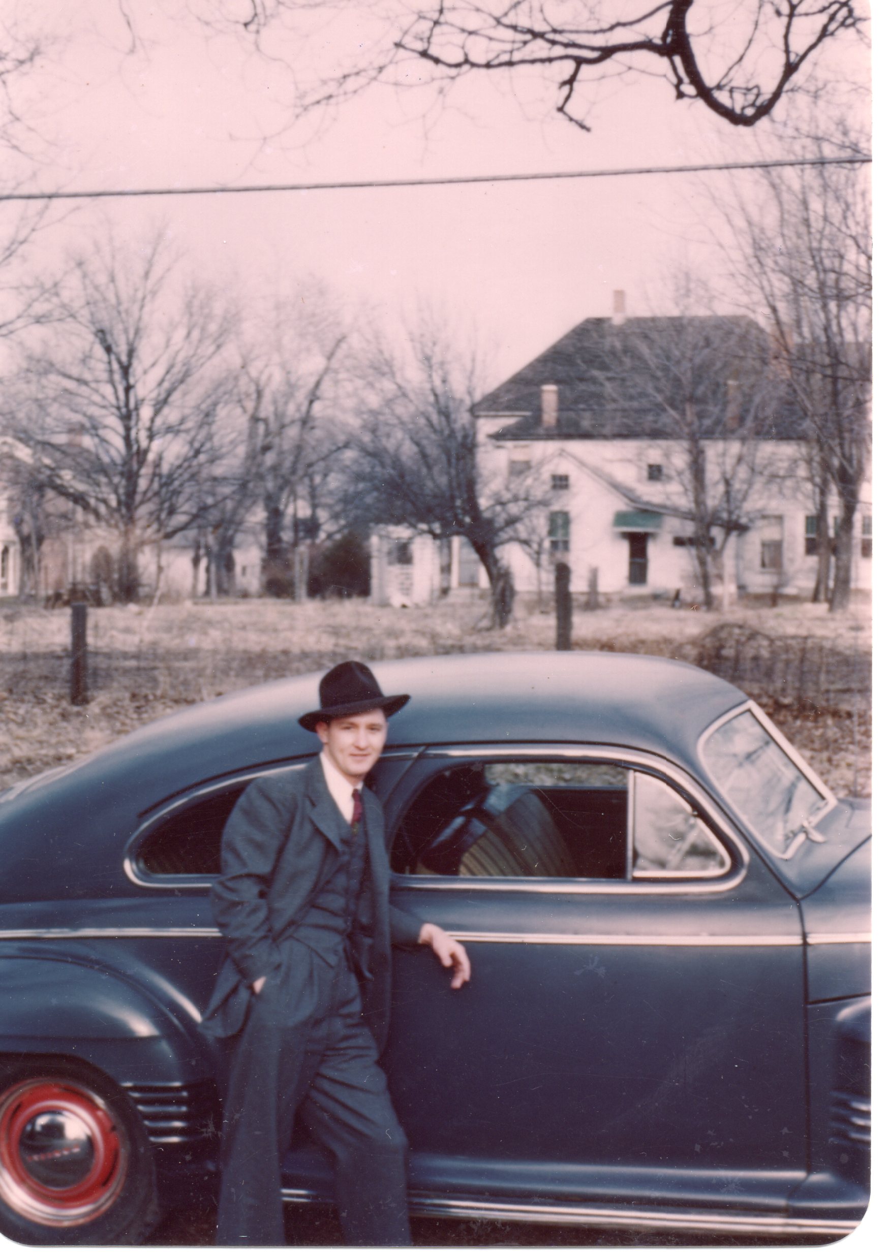I recently found this photo of my dad from around 1945. Can anyone identify the year/make/model of the car ? Thanks.
