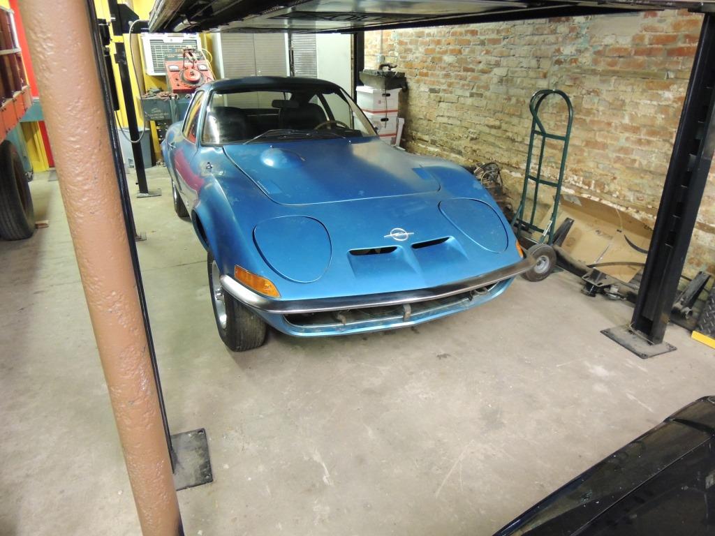 Anyway.... Just made a deal on a 69 GT 1.1 with an extra engine. Of the 100,000 Opel GT's sold in this country, only about 3500 have the tiny 1.1 engine. 46,xxx miles. Same owner since 1974. Less than 100 miles from me. Sherri and I picked it up yesterday. True basket case. But, other than the battery tray... no rust. HH paint code (Strato Blue) similar to Chevy LeMans Blue (my favorite color for the GT) Black interior. Dash is trash of course. No tears in the seats, but some seam separation. Vinyl is not that soft, so may need seat covers. Goal is to clean it up, get it back together, get it running (been sitting a while.. a long while) go through the mechanical issues, and drive as a survivor. Not a true survivor, as it had paint work done early in its life (sometime before 1974). If I do decide to do a full resto, it will be a while, as I have three projects in front of it. We have about a 20 mile commute, mostly highway, and plan to use this car 2 or 3 days a week for the commute. Going to shoot for 50 mpg, which I think is doable. Found a guy getting 65 mpg in his 69 GT with the same engine. Will be way more cool than driving a Prius. Driver's side door does not open from the outside, so the door panel is off and laying in the back "seat". But both door panels are in very good condition. To give you an idea how miniscule the engine and trans are; I can pick up the trans with one hand. Sherri and I picked up the engines without straps, chains hoist etc, just with our hands, and got them out of the Tahoe, then set them on the floor. One is missing the carbs (dual one barrels) and exhaust manifolds, but even the fully dressed engine complete with clutch and flywheel is light enough for us to pick up by hand. Complete car only weighs 1880 pounds without driver.