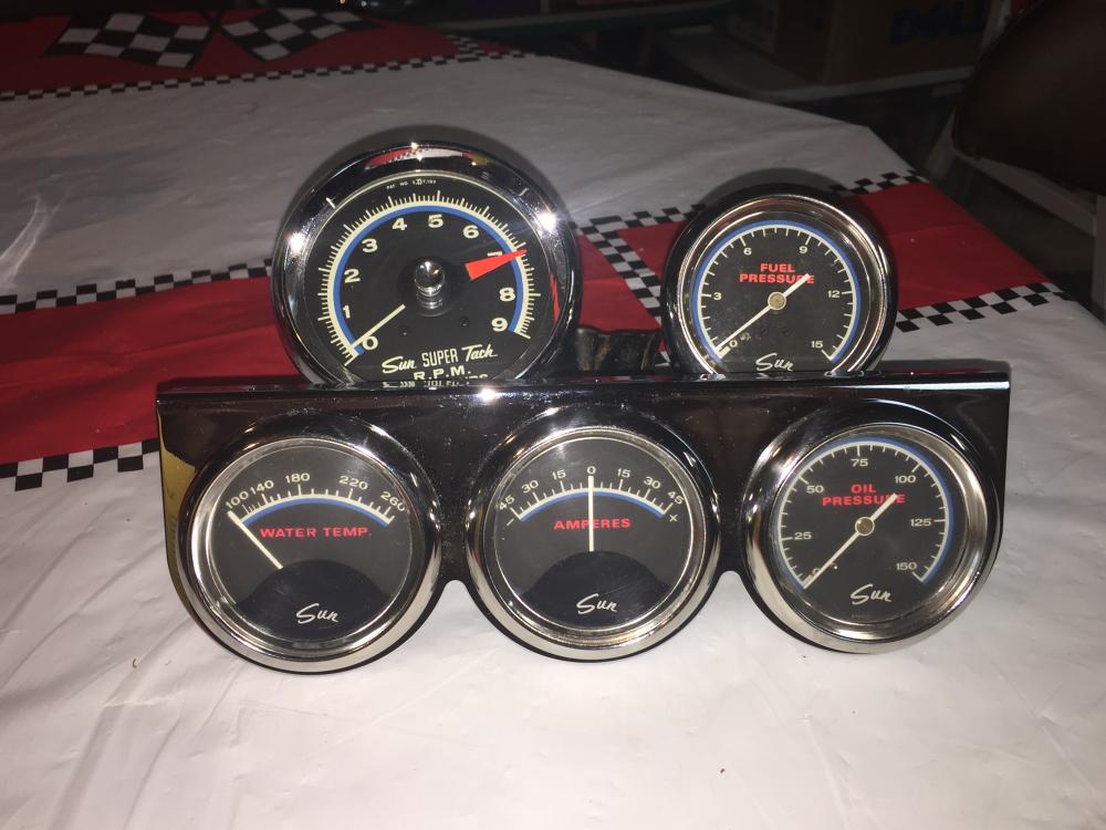 I bought these in the mid 80's to replace a set of TRW gauges I had in my Camaro. I loved the black face and Sun script, but .....the tach was the best of the lot. Both water and oil needed to be replaced after a few years. You can see the difference in script.First is was Sun, then Sunpro, then the cheapest yet...Suntune. Below is the first Tach I bought and my recently found NOS water.