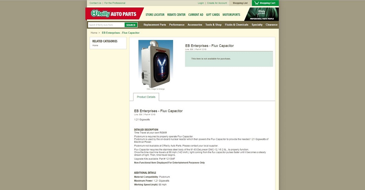 I wonder if NAPA or Auto Zone will have one in stock..?. Glad to see someone at O'Reillys has a sense of humor.