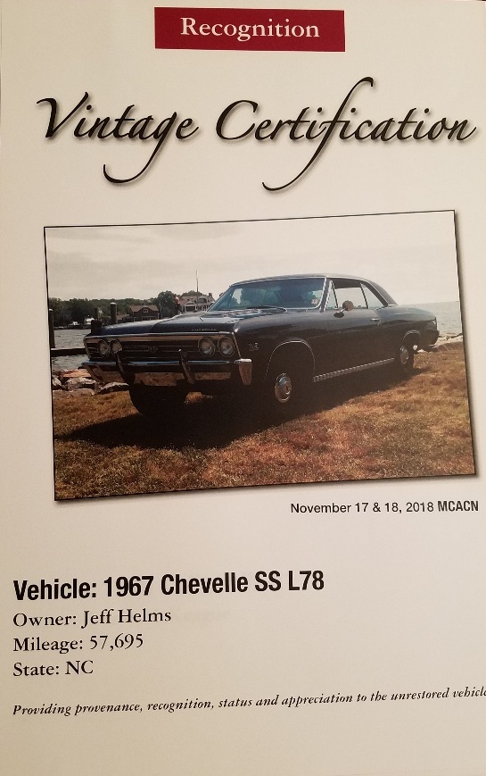 Steve Shauger The Supercar Registry www.yenko.net or www.thesupercarregistry.com Vintage Certification™ , Providing Recognition to Unrestored Muscle Cars. Website: www.vintagecertification.com Last edited by Steve Shauger; 10-30-2018 at 09:21 PM. |