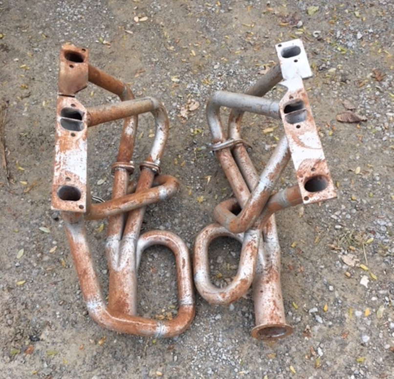 I recently acquired these headers and thought they might be Doug's headers based on a picture in the Pontiac thread (see B&Wpic). I looked closer today and see these stampings (pics below). One is 'JR (9?)191'. On the same flange on the other side is 'JR 192'. These are Pontiac D ports. I, now, believe these are JR headers. I was led to believe these are off a 67 GTO? These appear to be new with no exhaust residue or bolt marks on flanges