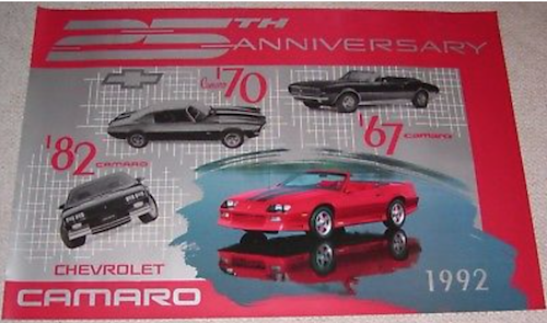 I found some mint 1992 Camaro Anniversary Posters in a tube. I'm paying it forward here. Pay $15 for a tube/shipping and I'll cover the balance. I have five. 24x36 size/ NOS never mounted. Thanks, Dan [email protected]