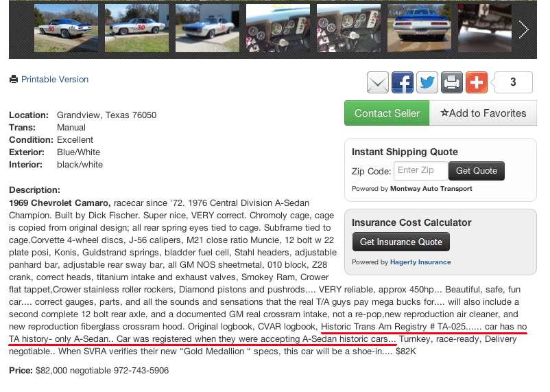Link to 1969 Camaro SCCA Racecar with Log Books ![]()