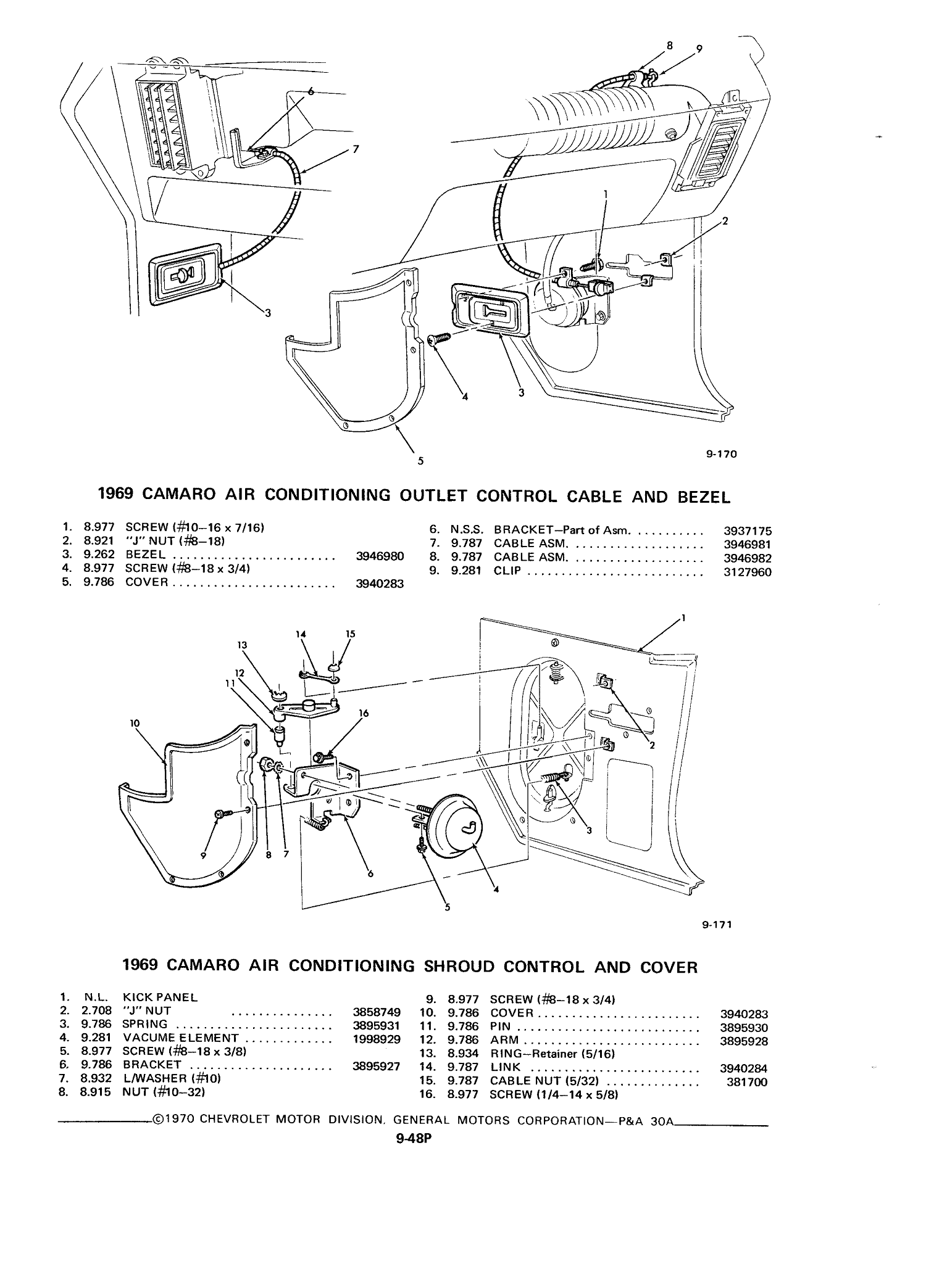 Hello fellow Camaro enthusiasts . I purchased my 69 Camaro AC car without kick panels. I purchased oer panels and the appropriate cables with lever. I know how the bezel screws to the kick panel but I have no idea how the cables are supposed to be routed. I'm almost certain that the passengers cable or duck behind the actuator cover but I'm not certain. I have absolutely no idea how they cable routes behind the kick panel for the driver side because there's no hole for the cable to dive behind. Does anyone have any pictures and or experience with the installation of these cables. Thanks
