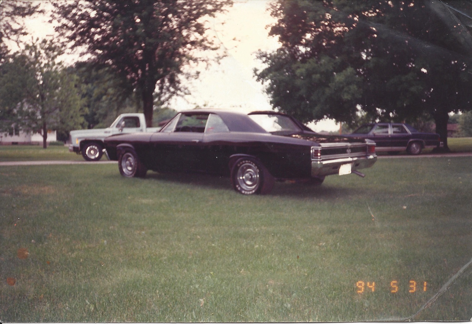 I purchased this Chevelle back around 1991 or 1992. I found it in our local "Tradin' Post" classified newspaper. It was black on black, and it had a very mild (flat tops, stock 1.94 461's and a COMP 268 High energy HFT cam) 327 with a QJet on an OE iron intake, a Saginaw 4 speed and a 12 bolt with 4.10 gears.