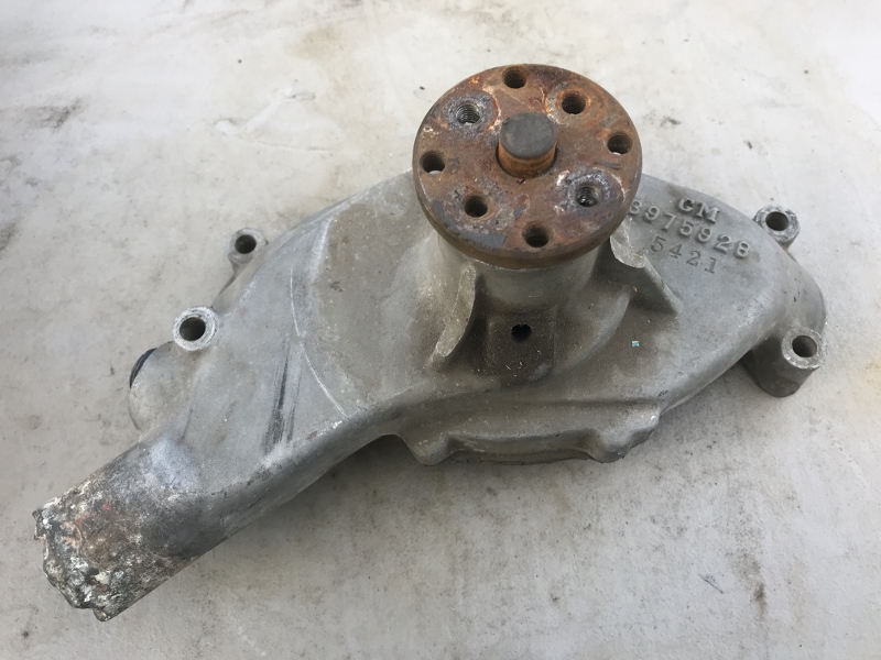 Hi Everyone, I have a core here - the aluminum BBC short water pump cast part number 3975928 - we all know these were the OTC service ones and the ones that came on a lot of crate motors, like the 427 and 502 crate engines... this one is old though, it doesn't have the cast date below the part number from the 1990s like most you see do - so who knows; it could be a very old one. See photos, it is clearly a core that will need rebuilding - the lower rad hose outlet is corroded, but still very serviceable IMHO, but look at photos.