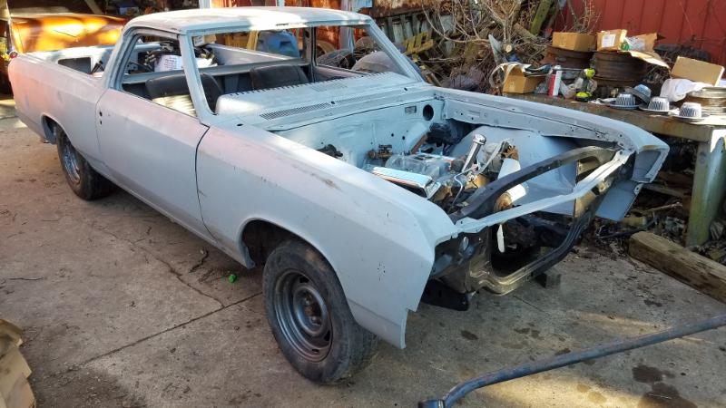 The EL Camino since taken apart over 30 years ago and three different storage facilities some original parts are missing, but the most important parts, the "Born With" drive train are present.