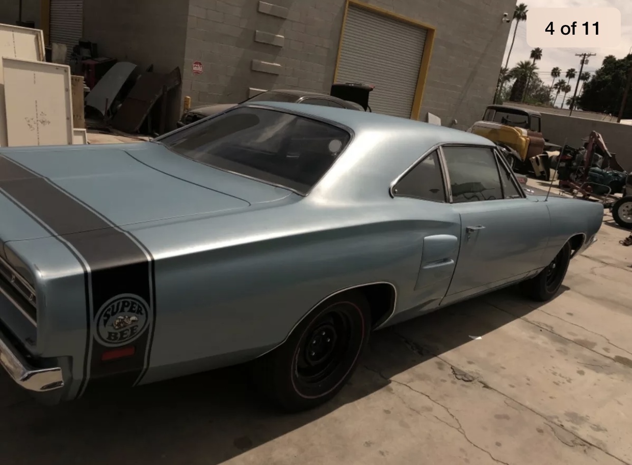 1969 Dodge Superbee A12 440 6 pack automatic in Steel Blue with black interior.