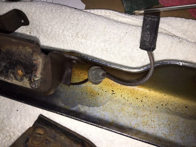 I feel like I'm asking a dumb question here but this one has me stumped. I spent some time stripping the brackets from my original bumpers today. The center bracket appears to be riveted to the bumper. How in the world do you get the plate lamp housing/wire pigtail out of there? This piece could not have been in place when that bracket was riveted to the bumper correct?