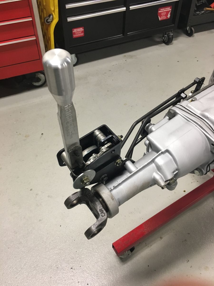Here are some pictures of the shifter installed on a trans. It sits way back on the trans, not sure this will work, also no reverse lock out. You ratchet front and back. I have a video of it also but not sure how to share that.