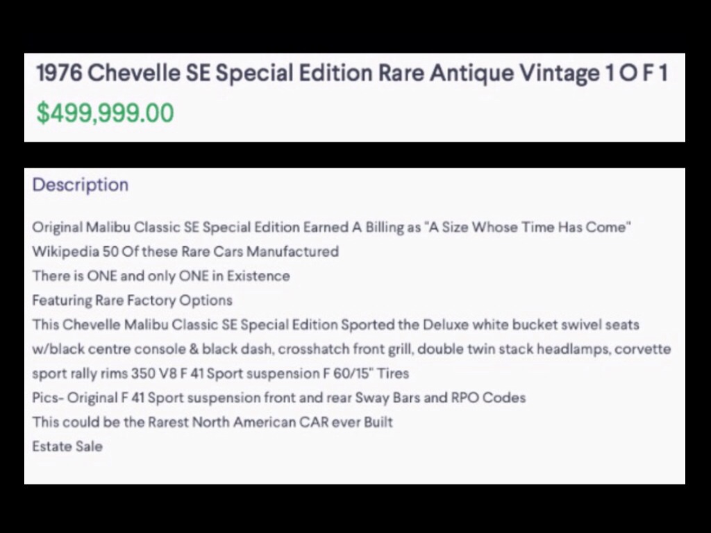 I've seen it so many times but this one takes the cake.Some people think that a rare car is worth crazy money even though it isn't fast,amazing to look at or someone famous owned it.