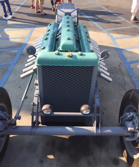 I have seen a few of these two stroke Detroit Diesels put into rods and I thought they were mechanically over the top until I met the guy last night at the Wheelersburg Ohio cruise who created a sling shot cycle out of one.