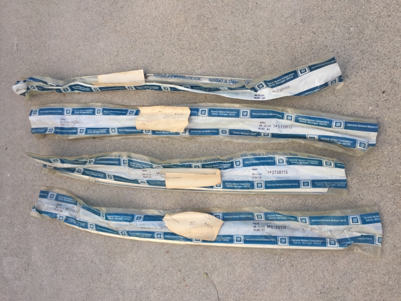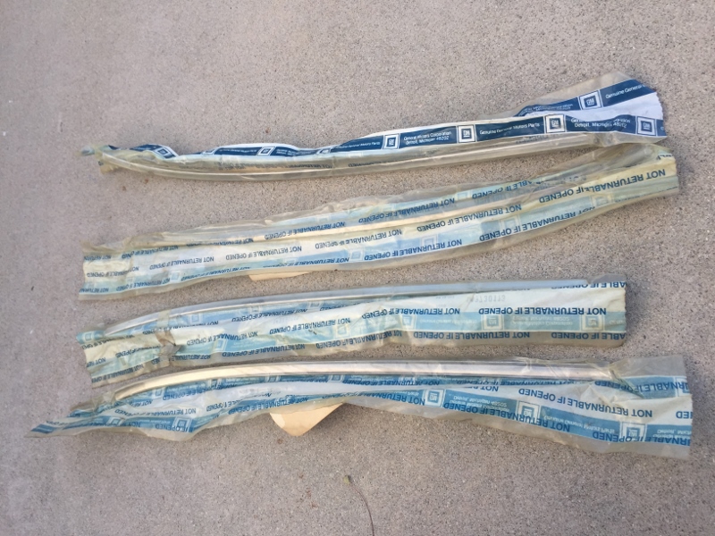 Hi sYc Friends, I have a set of GM NOS mouldings for 1956 - 1961 Corvette here - all in the unopened GM wrappers as shown. 3730111 3730112 3730113 3730114 all but the little elbows 3730115 - I didn't find those. Four piece set $200 PPFF shipped with tracking to the 48. That's $50/piece for real, NOS GM! shipped. Thanks all, Anthony Last edited by AnthonyS; 04-26-2020 at 09:19 PM. Reason: sold |