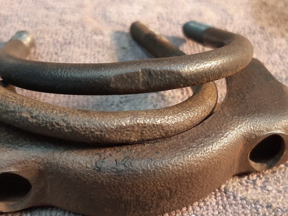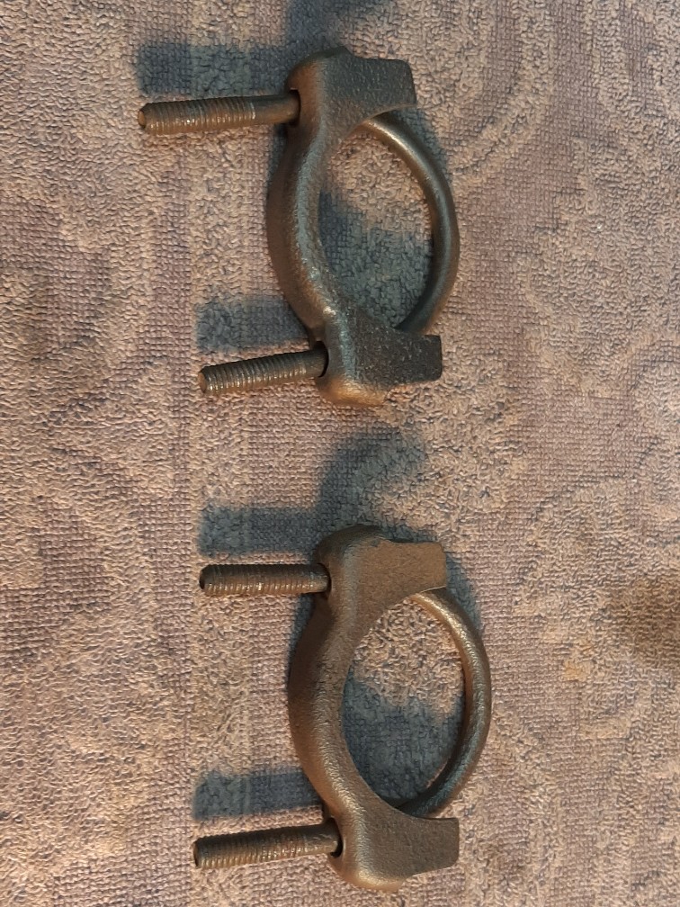 So here is one I've never really looked into over the years. And came across these in 1 of my old bins that had a lot of very original 1st Gen. Camaro parts. My question would be are these assembly line exhaust clamps. They have a couple of interesting features which are typical of the time period with Oh stamped on the middle of the lower brace, similar to transmission U joint straps and the U bolts have the flat stamping on the top Similar to the original U bolts on the rear ends. Any help would be appreciated. Thanks also with these have flanged nuts or just nuts and lock washers?