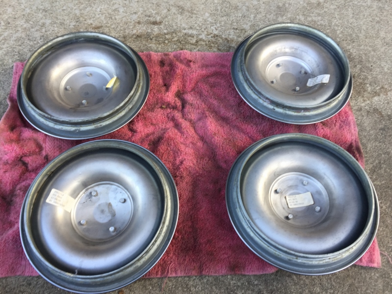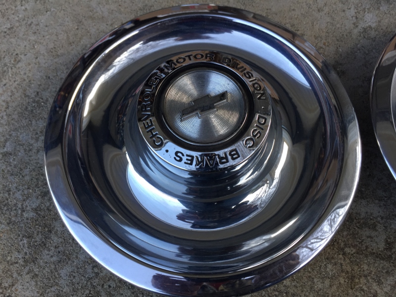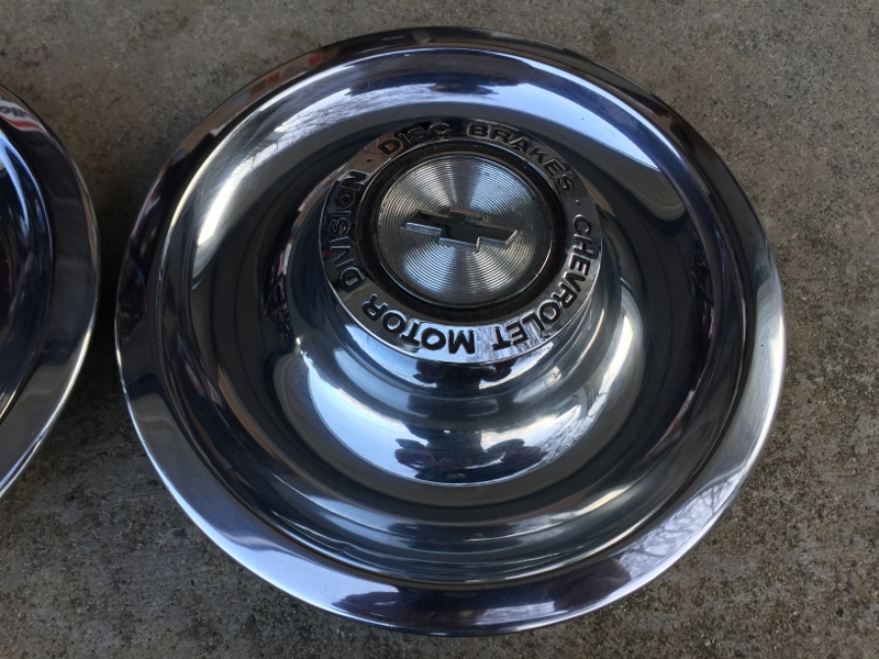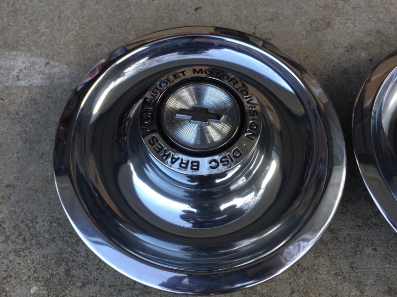 full set of 4 1967 rally ralley caps here - mounted for a week in mid 90s when I restored my car before I found the correct derby hat type caps. No boxes anymore - some very slight shelf wear as shown, but these will shine up nicely. NI - Norris Industries tag dated 07-06-90 have the correct GM triangle screws. SOLD Thanks all, Anthony Last edited by AnthonyS; 03-14-2020 at 04:50 PM. Reason: sold |