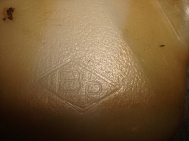 I have one with a small "C" on the bottom and one with a "BP" in a diamond. IIRC, the BP one was the one on my car when I bought it. Not to hijack, but does anyone have tips on how to remove the stains and "brighten them up"?