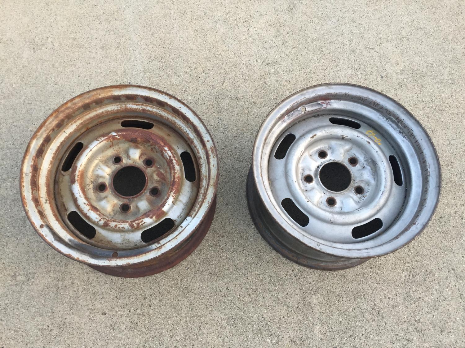 good shape, nice stamps - see photos. lug holes good, no terrible rust / pits and nice beads. Typical CA wheels.
