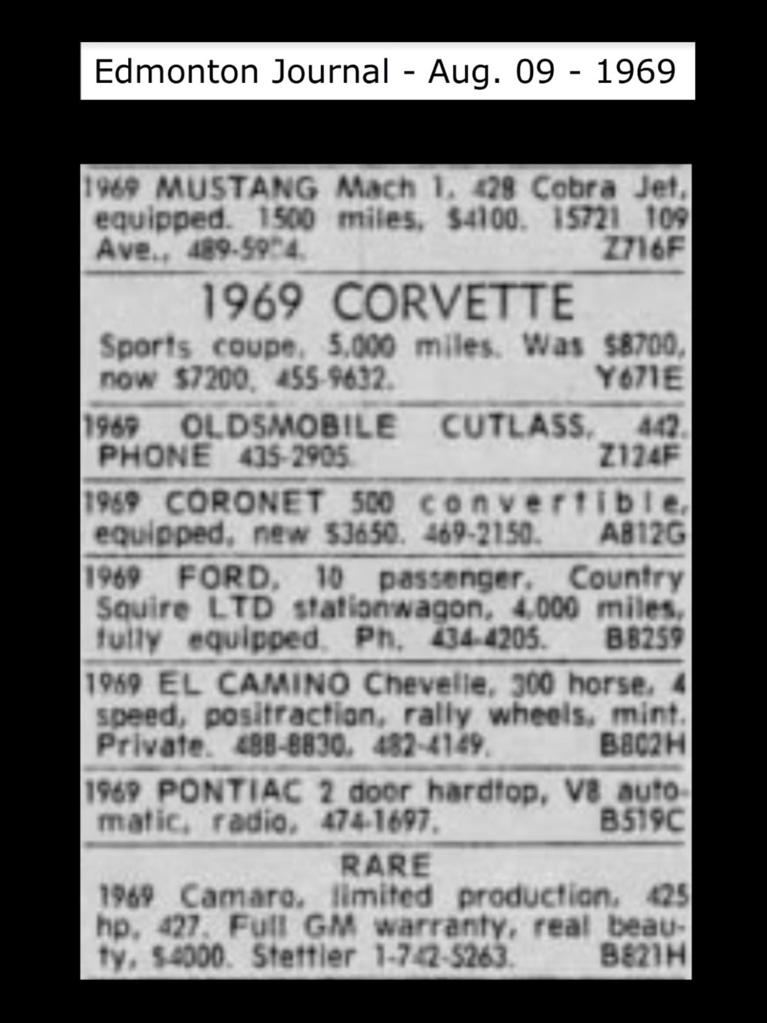 I see the 635276 VIN on a list w/ 9561BA + 72 Paint + 711 but know nothing of what may be original of any car existing today? I also have a handful of old Edmonton Newspaper ads saved for what may be the same car being sold a few times used from 1970-74 w/ different Phone #'s that may help if anyone wants to try backtracking. Here's an ad from the July 20/71 Edmonton Journal, sure sounds like an L72 M40 car? ![]() ![]() ~ Pete .