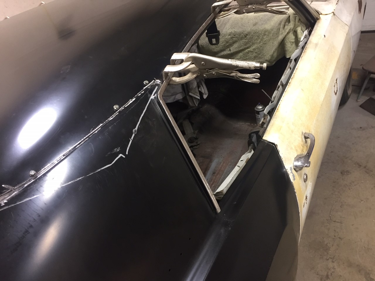 Removed the inner wheel well the other night to find this. I made the repair last night and removed all the old quarter pieces left from cutting it off. I will start mocking the inner outer and quarter tonight.