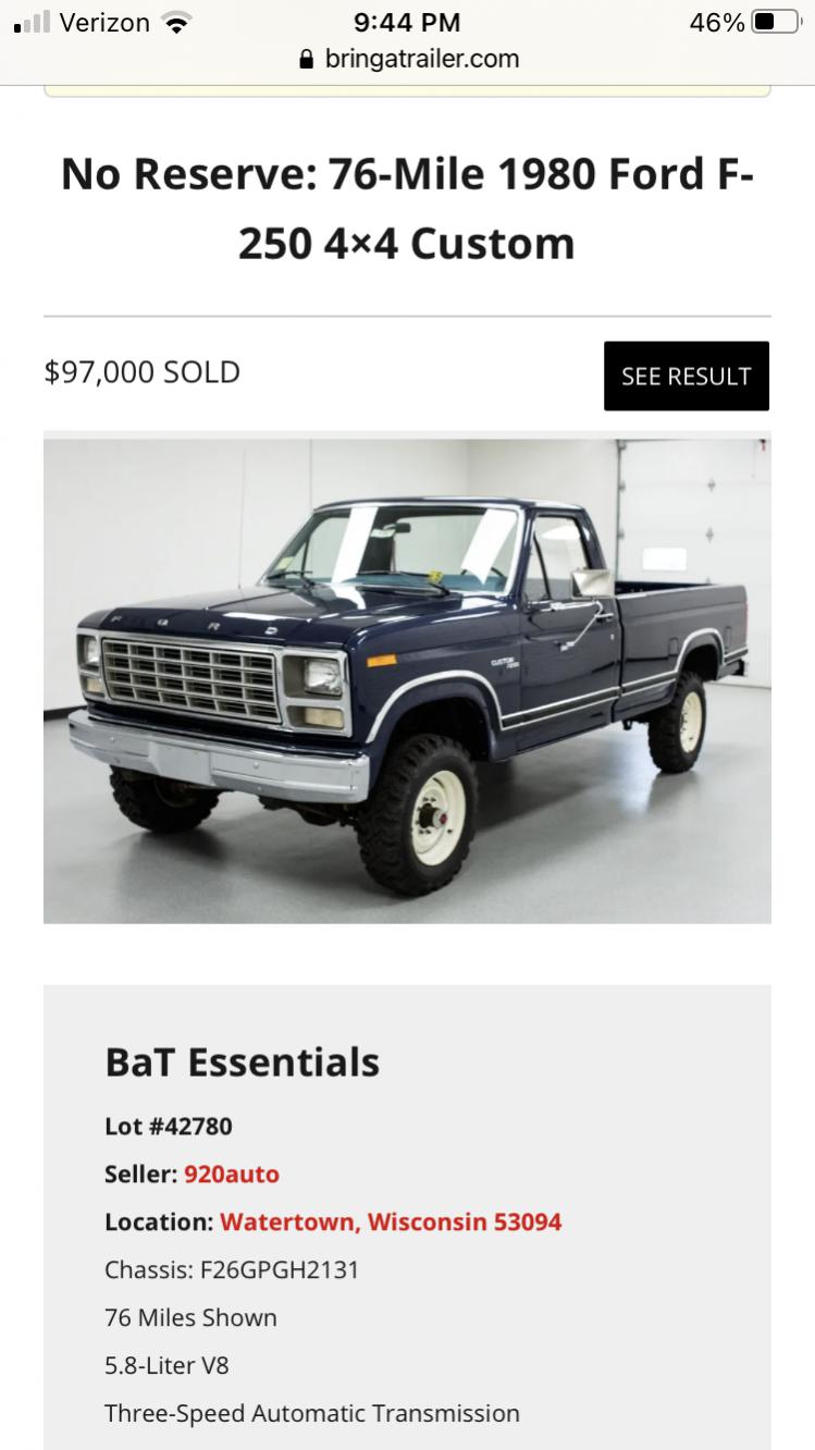 https://bringatrailer.com/listing/1980-ford-f-250-4/ Last edited by tom406; 02-02-2021 at 05:47 AM. |