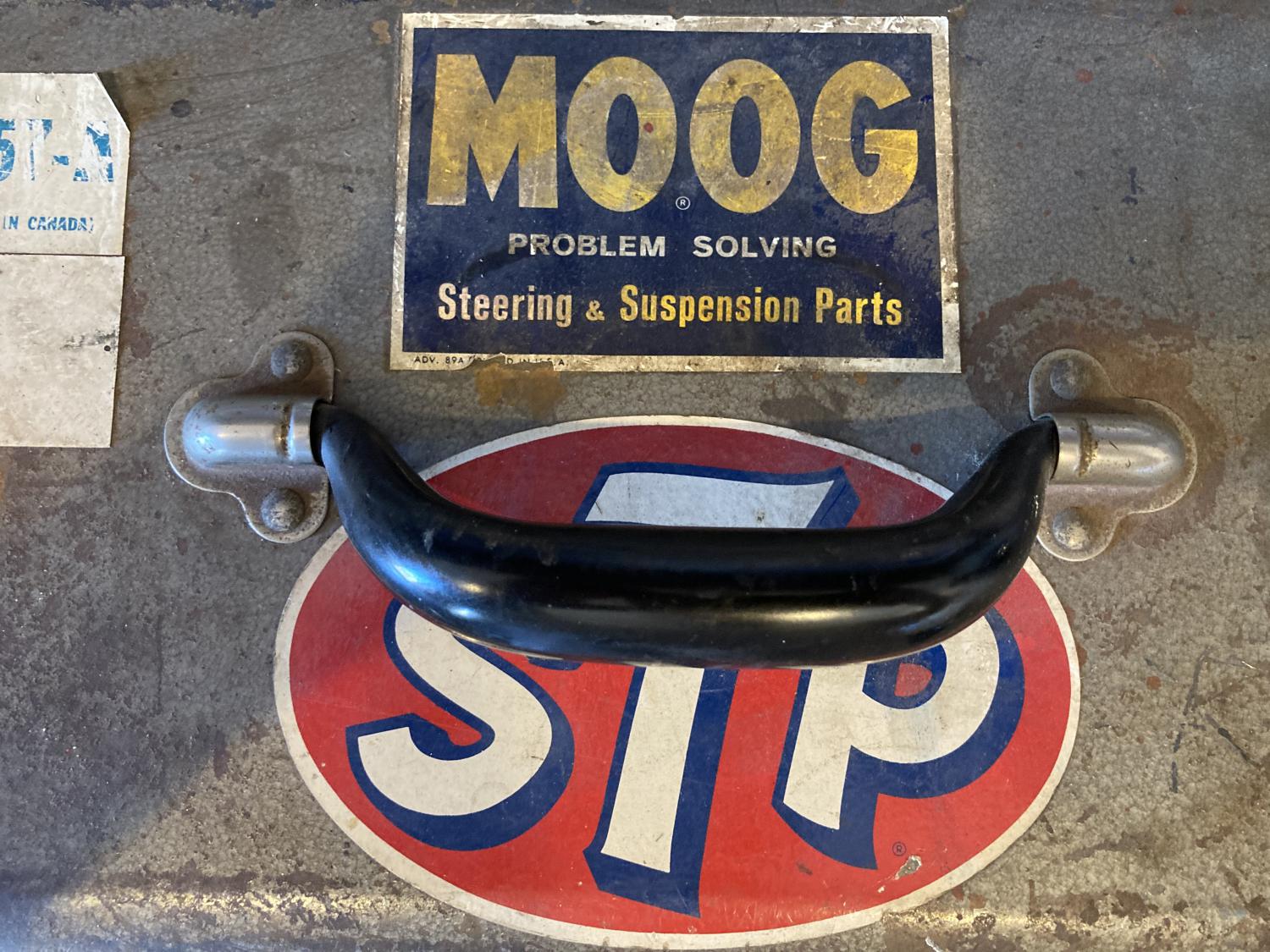 My dad passed in 1997, mom passed this last February. We’re in the process of cleaning out her house and all of my dads stuff is still there, tools and such. Here’s a pic of a couple items I remember vividly from when I was a kid. Item 1, the Geiger creeper. My dad typically worked on the family cars on Saturday mornings and I would always go to the auto part store with him. One Saturday morning, we parked to go into the store and he found $5 in the street. My dad was a pretty thrifty guy and wouldn’t typically buy himself a luxury item like a creeper but I guess he figured why not throw in a little of his money and splurge a little. Item 2 was picked up at the same auto part store as they were giving these away and my dad got one. I was able to talk him into letting me use it to store my model car paints and glue. Please feel free to share anything of yours that came from Dad’s garage.