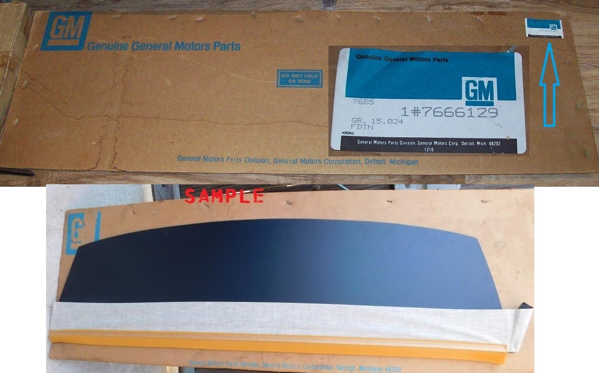 NOS 7666129 GM black rear package tray in original GM Cardboard Unopened dated 1-17-84 (January 17 1984).