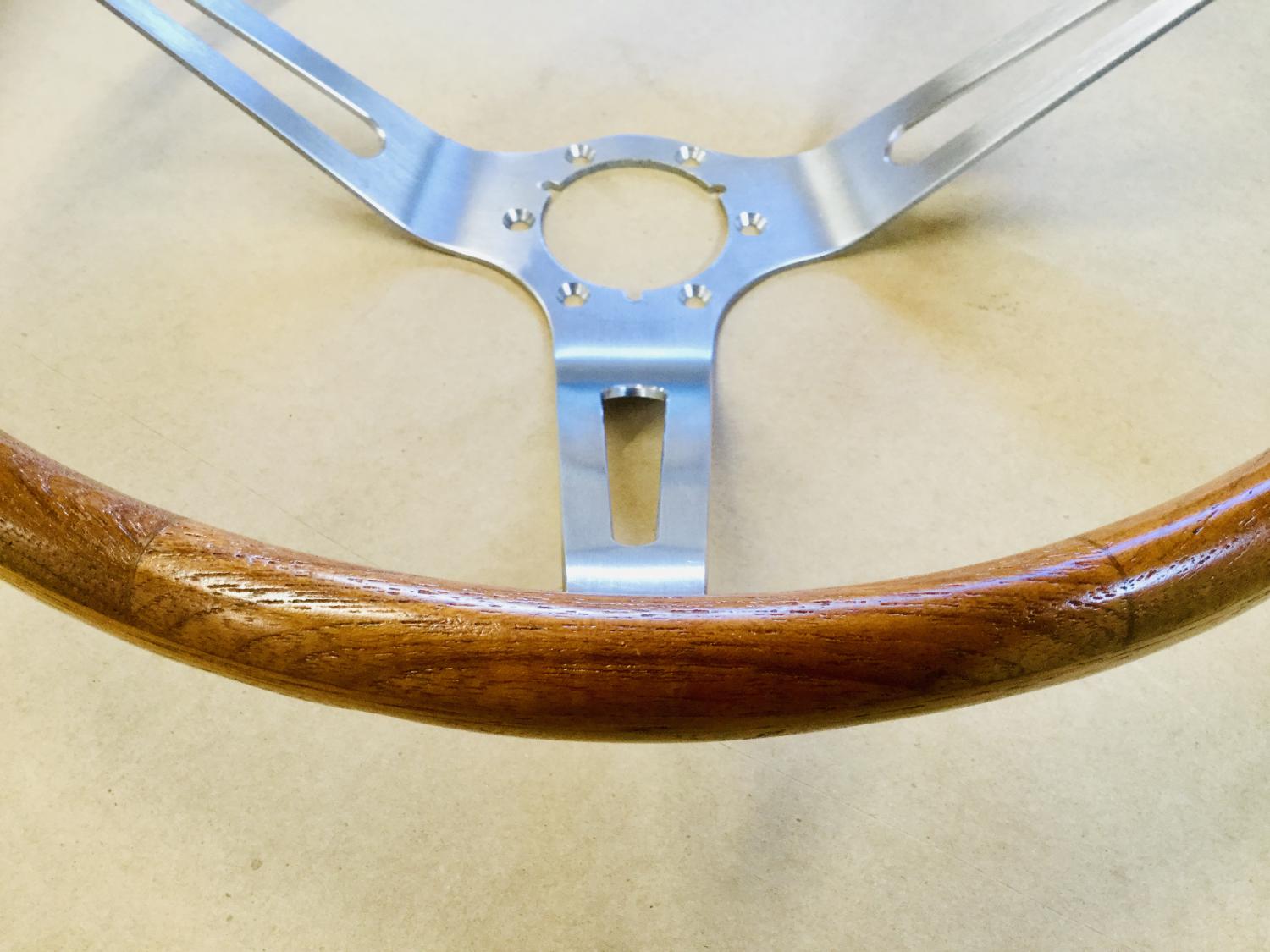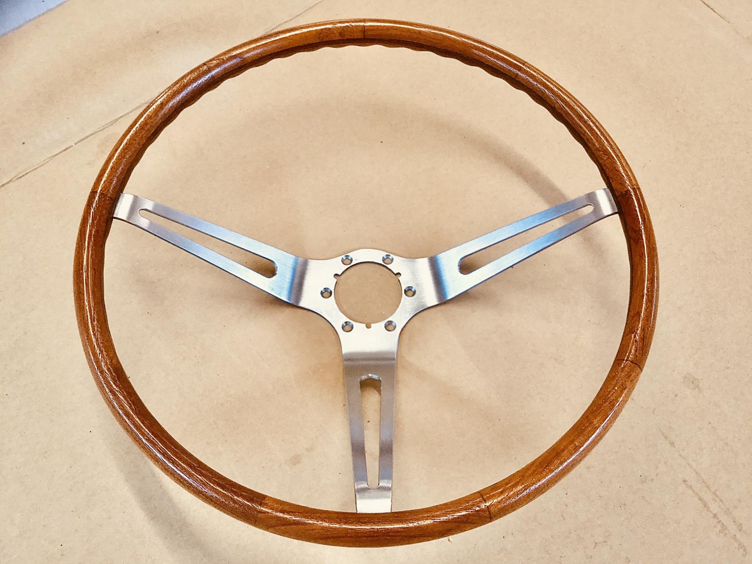 Teakwood is an extremely tough, durable wood that was also used on the decks of battleships because of its water resistance. The fact it would splinter and puncture the skin, and possibly the lungs of the driver in an accident was the main reason for discontinuing this option. I purchased this wheel in 1975 at the Bob McDorman Corvette meet in Columbus Ohio. It’s flawless and the only thing I have left of my Corvette days back in my hometown of Springfield, Illinois. |
