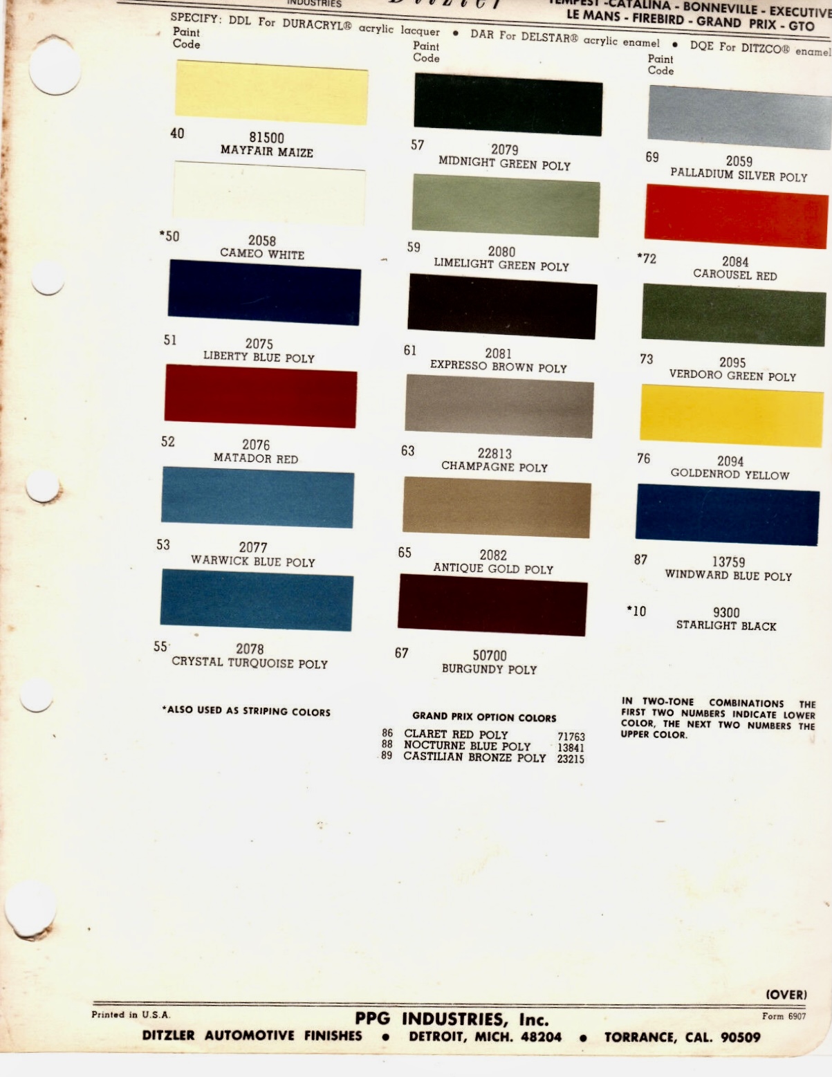 69 Pontiac Mayfair Maize and 69 Chevrolet Butternut Yellow.