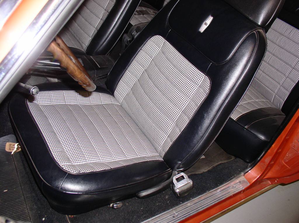 This is an Al Knoch interior. It's over 20 years old. Heavy weight Madrid vinyl. Yours won't have houndstooth but they do really nice work. I think the heavy weight is standard but you can ask...Joe