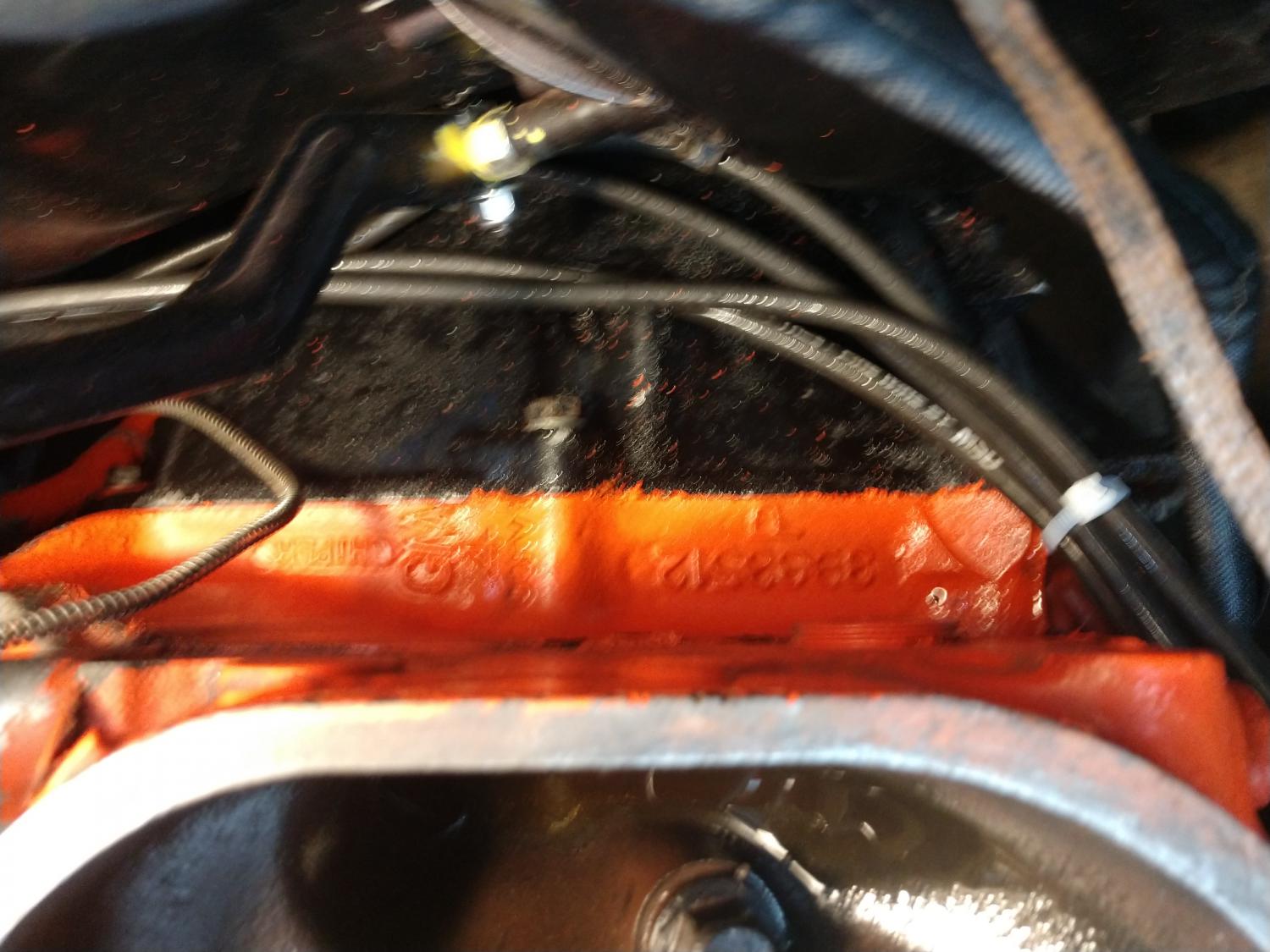 *Block #3963512 *Block casting date is C-11-9 *Right Front deck stamping is TO512MN. Correct to a (4SPD.) COPO *VIN#19N 9487(Above oil filter, vertically on block bell flange) 19N I'm pretty sure is a Camaro installation?..Only the last 4 of VIN (not 6)are stamped here. I've read that Norwood got sloppy on protocol sometimes? Thanks very much! Blake Bailey Last edited by Maxibrake; 07-29-2021 at 05:51 AM. Reason: Pictures |