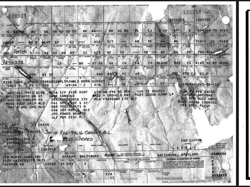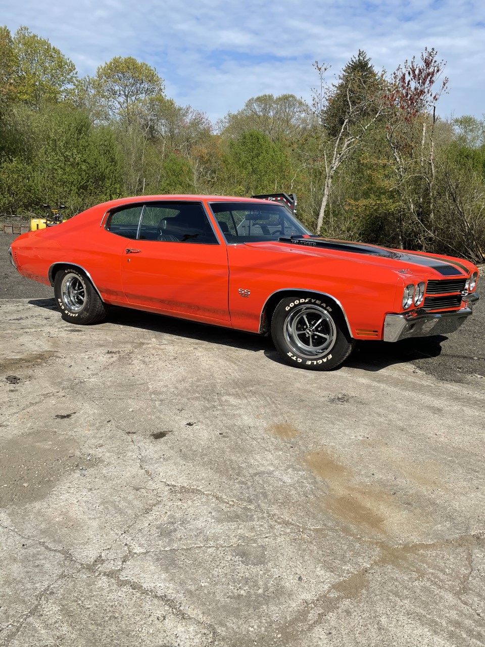 i recently purchased the car out of maryland the owner has had it since 2005 it currently has a ls5 and th350 i'm going to hunt for info on what happened to the original engine and trans. unsure why the pics it looks cranberry red it is for sure monaco/hugger orange