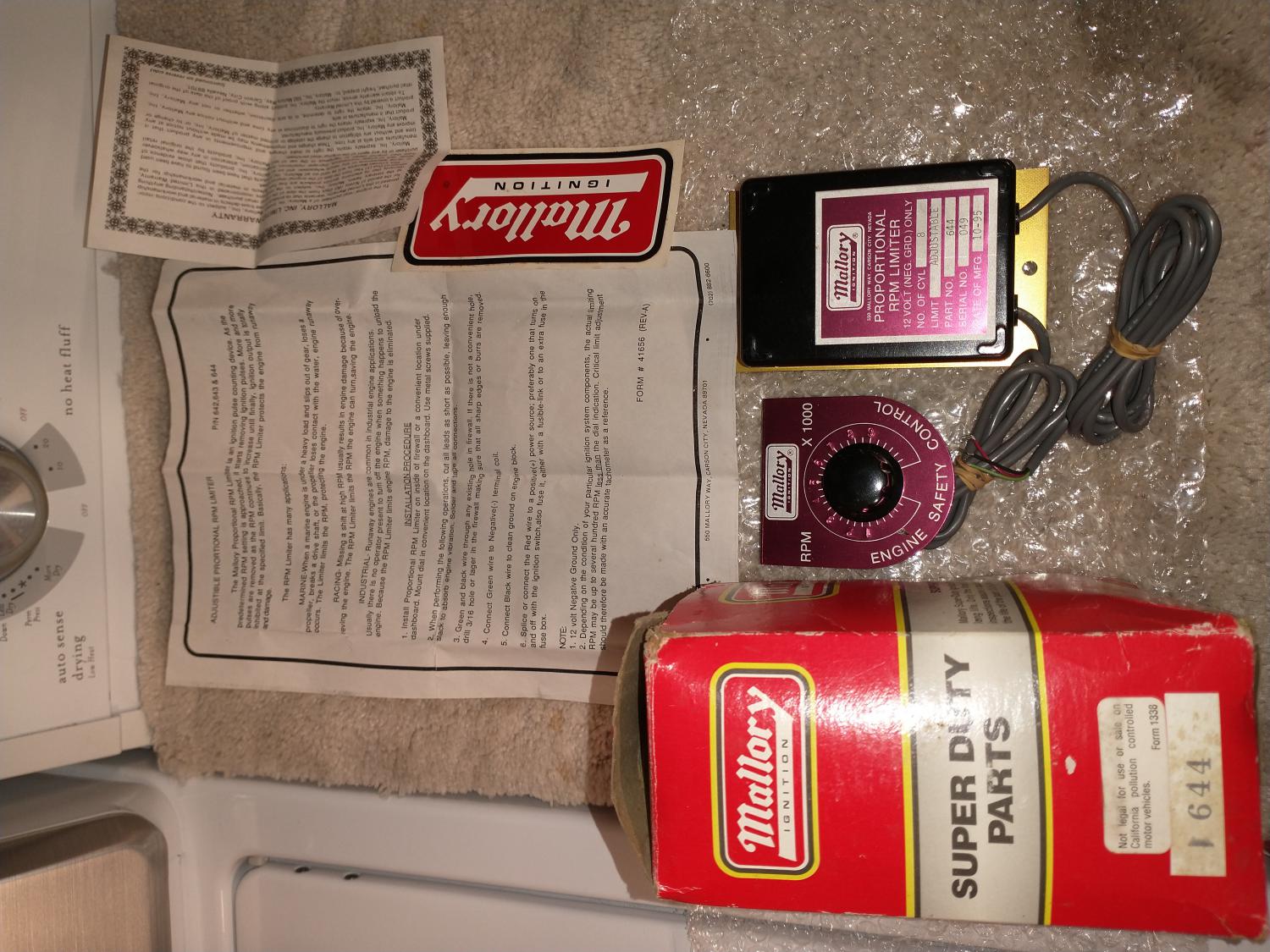 New in the box. N.O.S. MALLORY SUPER DUTY ADJUSTABLE REV LIMITER. #644. 8 cylinder. Complete as pictured NEVER Used. $235 shipped low 48. Canada Australia UK Europe cost +15. Pay pal family and friends. [email protected]