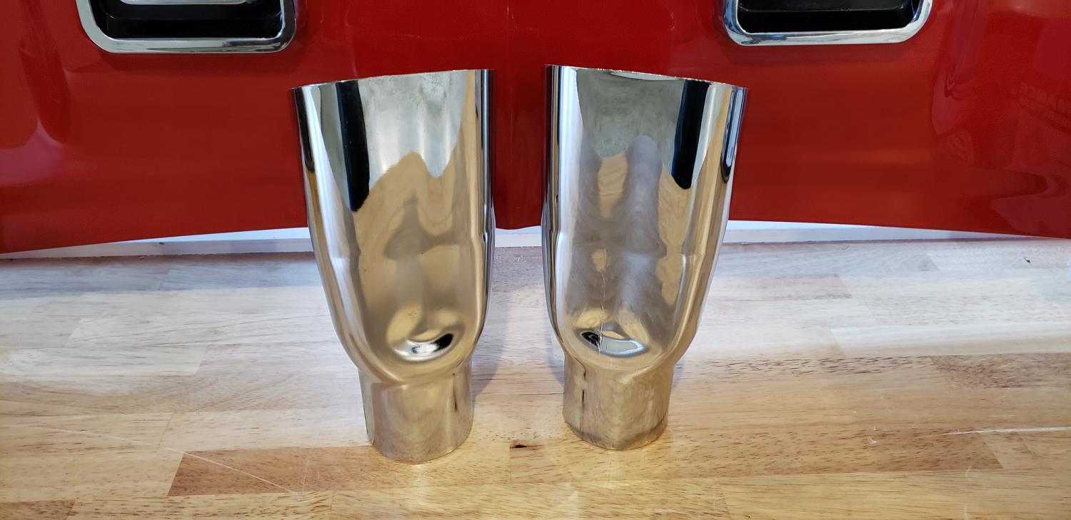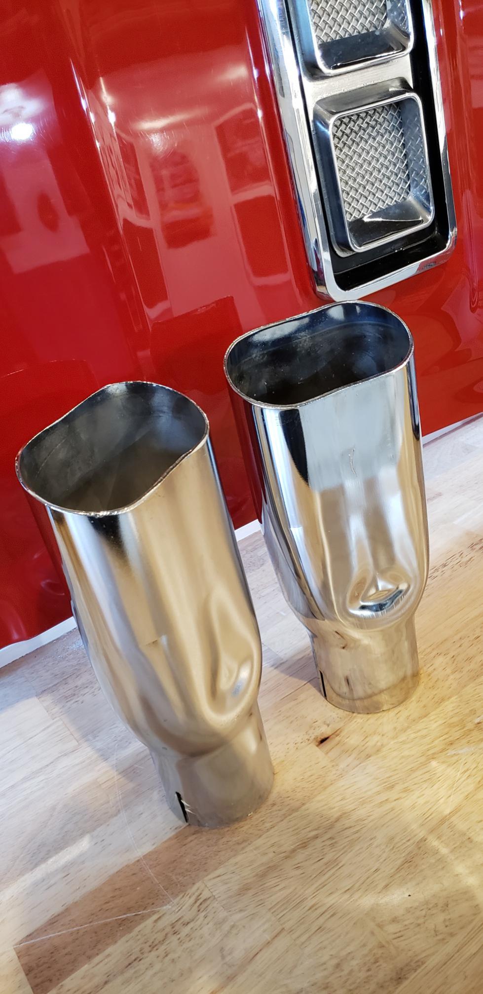 Set of SS exhaust tips, these are the early ones with no stamped number on them. I do not have the original boxes for them.