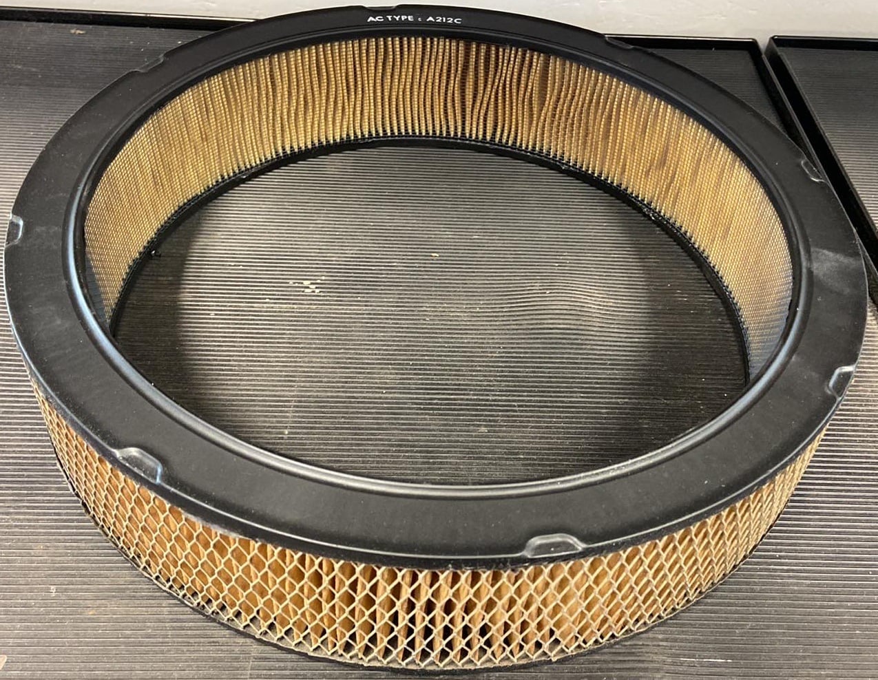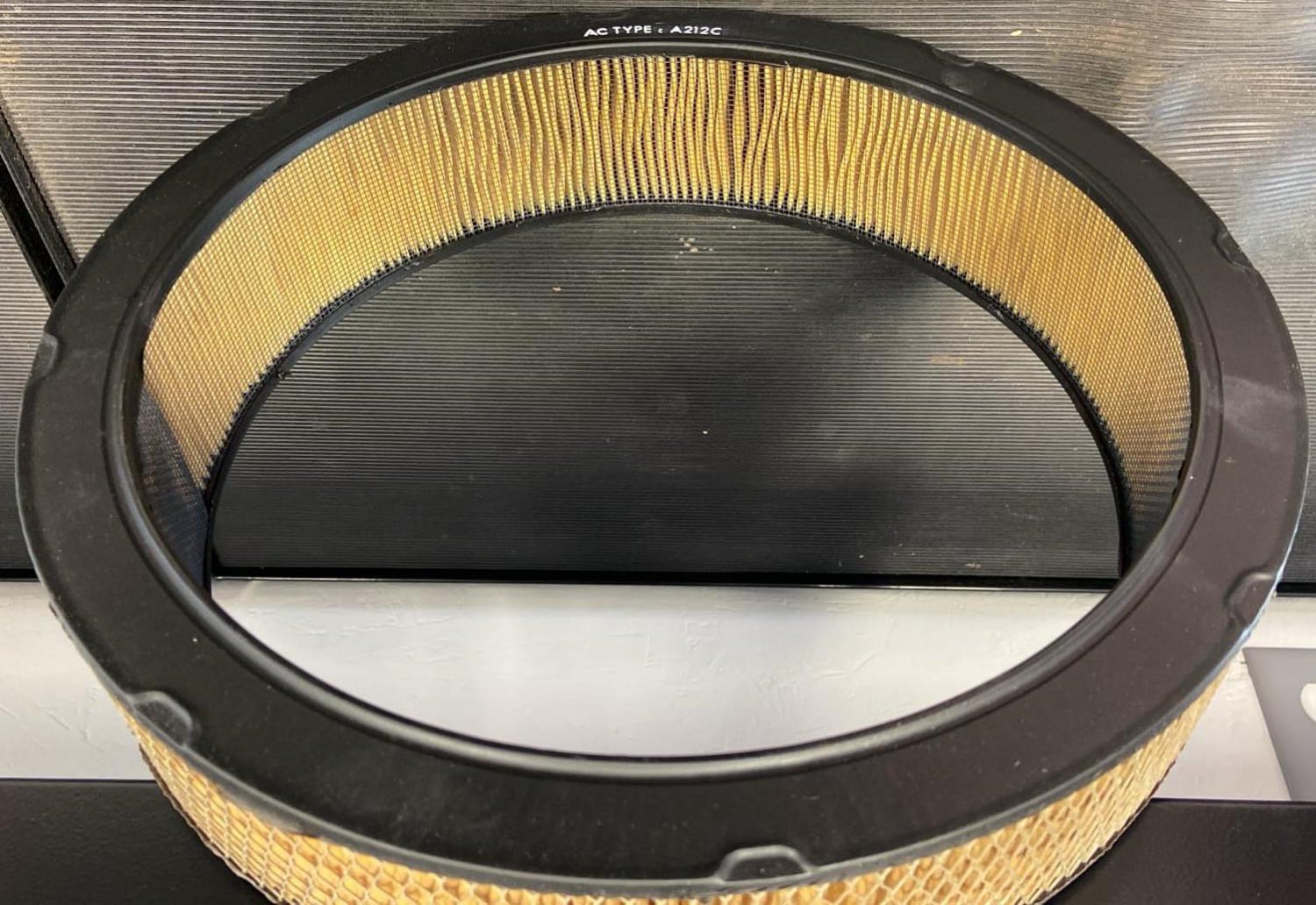 -Later Over The Counter service replacement NOS Air Filter that fits many 1970 to 1977 Big Block and Small Block motors with the diamond mesh pattern, known as part number 6421746 A212CW which came from a Air Cleaner Assembly dated 1979, white ink wording as shown for this time frame was "AC Type-A212C". Because it came from a complete assembly there is no GM box Included. $150 Plus $10 Shipping ❌ SOLD