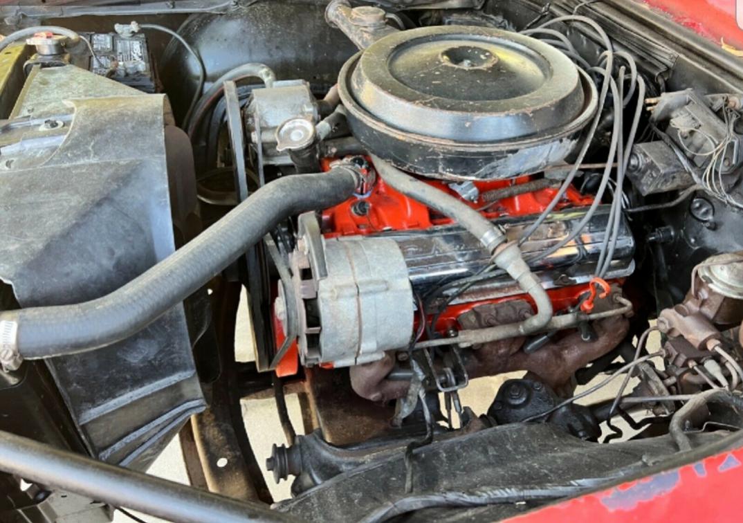 Looks like a project car with nice options and color. Red, ragtop, 4spd, console, gauges. The interior has been changed to deluxe.